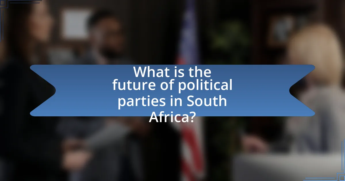 The future of political parties in South Africa is likely to involve increased fragmentation and the emergence of new political movements. This trend is evidenced by the rise of smaller parties in recent elections, such as the Economic Freedom Fighters and the Democratic Alliance, which have gained significant support by addressing specific voter concerns. Additionally, the ongoing challenges faced by the African National Congress, including internal divisions and declining popularity, suggest that traditional party dominance may diminish, leading to a more competitive political landscape. The 2024 elections are expected to further reflect these dynamics, as voter discontent with established parties continues to grow.